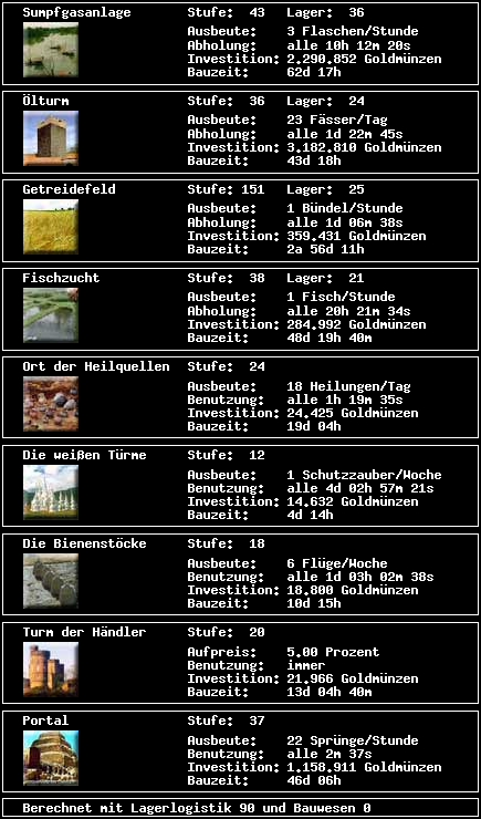 Anleitung zum schnellen Einfügen: 1.Übersicht der Ausbaustufen unter Statistik bei Freewar öffnen 2.Vollständige Auflistung im Hauptfenster kopieren 3.In das Textfeld oben einfügen 4.Auf Aktualisieren klicken