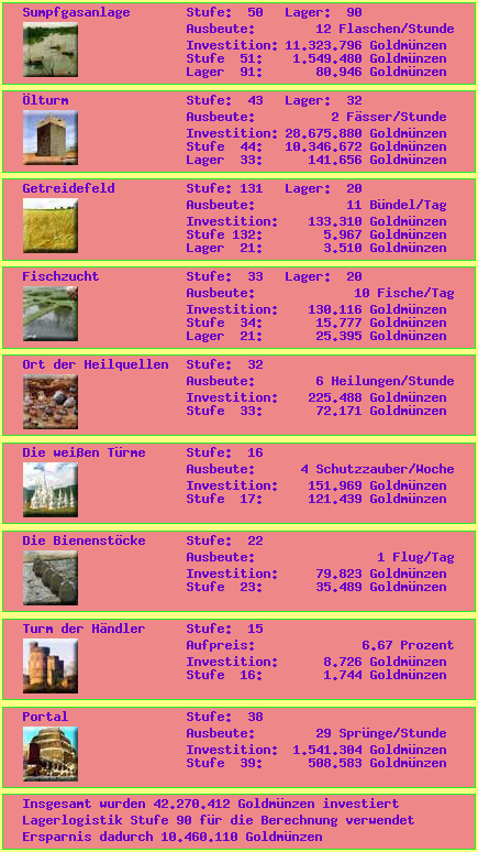 Anleitung zum schnellen Einfügen: 1.Übersicht der Ausbaustufen unter Statistik bei Freewar öffnen 2.Vollständige Auflistung im Hauptfenster kopieren 3.In das Textfeld oben einfügen 4.Auf Aktualisieren klicken