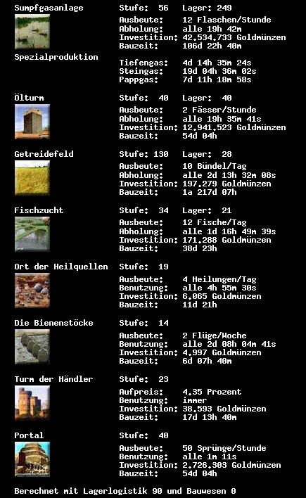 Anleitung zum schnellen Einfügen: 1.Übersicht der Ausbaustufen unter Statistik bei Freewar öffnen 2.Vollständige Auflistung im Hauptfenster kopieren 3.In das Textfeld oben einfügen 4.Auf Aktualisieren klicken